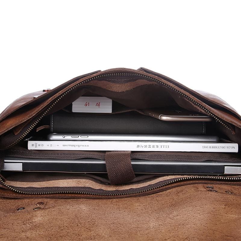 This classic natural leather messenger bag is perfect for anyone who wants a stylish alternative to the traditional briefcase, or wants a handbag they can still wear when it's pouring rain (there's lots of interior room!). Built to last using only the highest quality materials, this bag will keep your hardware safe and stylish wherever you go.