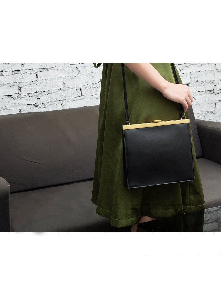 The timeless chic of the CLASSIC LEATHER VINTAGE SHOULDER BAG will make a simple, but attractive addition to your wardrobe. This compact bag is crafted from smooth synthetic leather featuring metal details and a large kiss-lock compartment with two pouch pockets inside. With it's non-detachable and non-adjustable shoulder strap, you're sure to find an occasion to use this lovely bag!