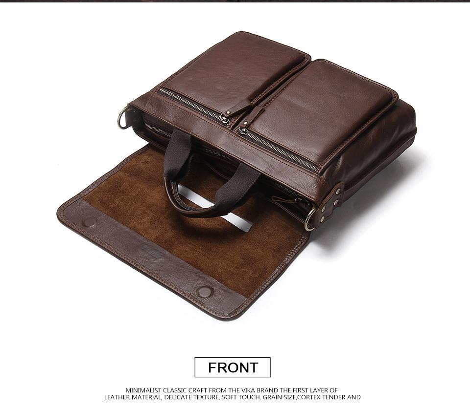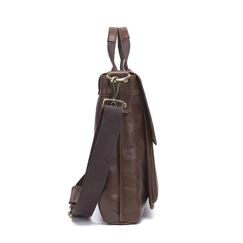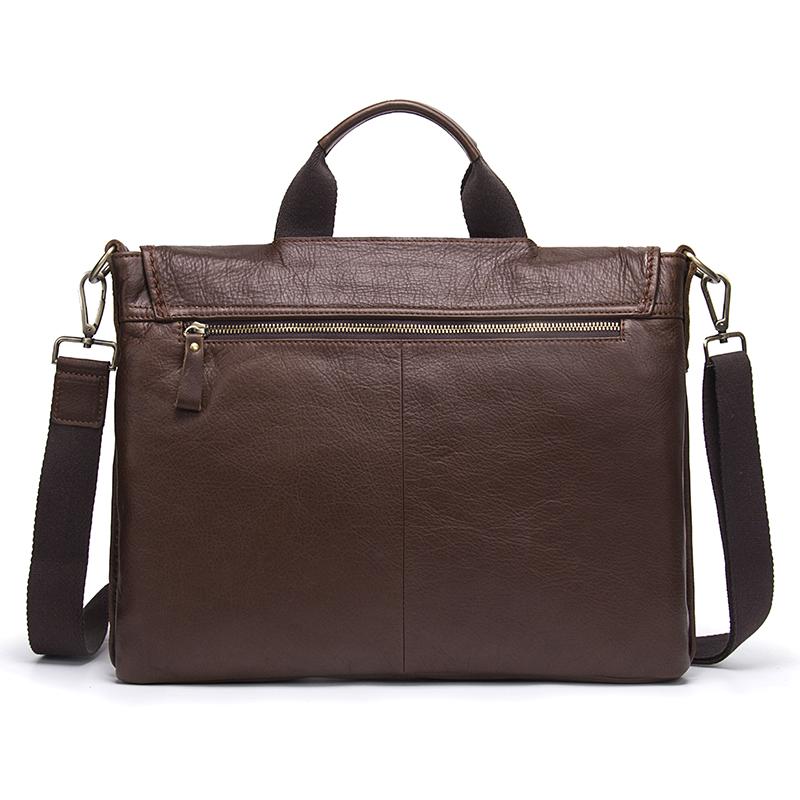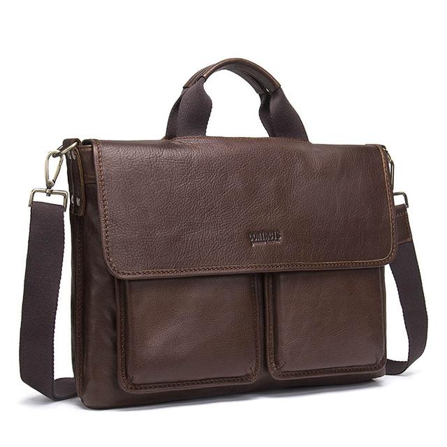 Our genuine leather briefcase is made from strong and sturdy material. With its multiple compartments, this briefcase will help you carry your most important belongings in style. The large front pocket design will keep all of your smaller items neatly organized and the zippered closure on the compartment locks all of your small valuables in safely. Easily fit this briefcase into any handbag for travel or make room for it under your desk with its long leather strap.