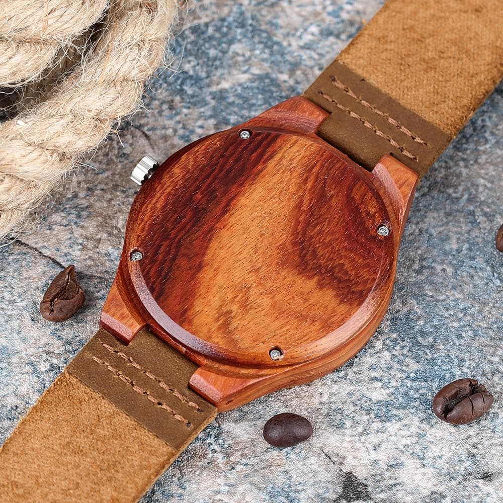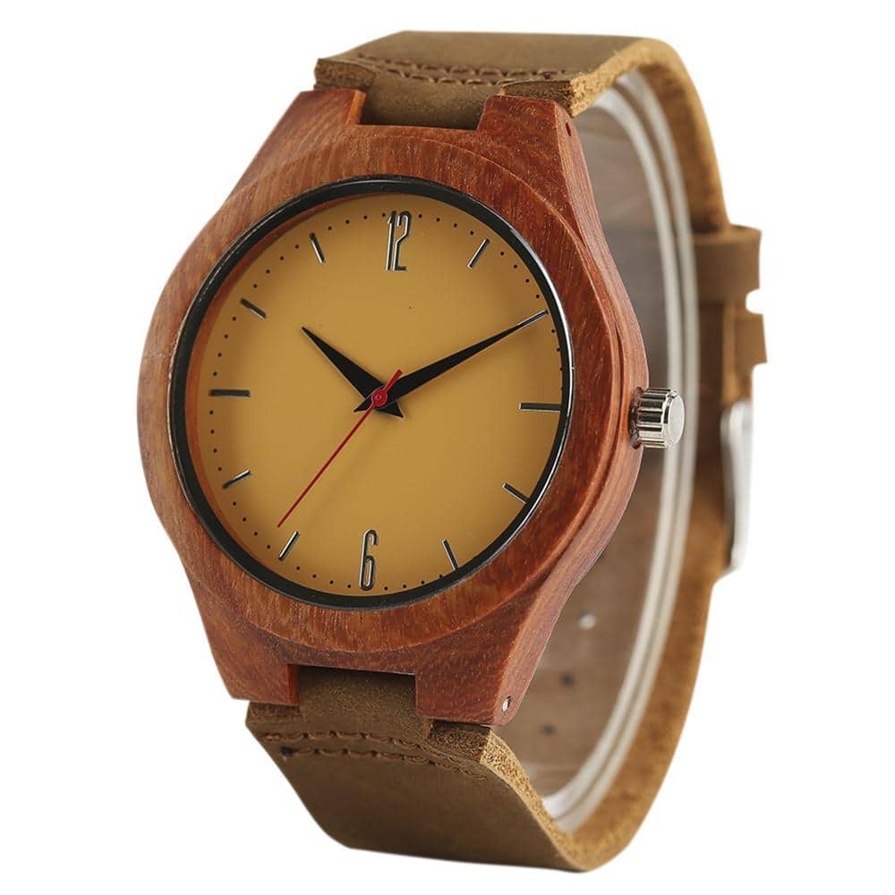 This Red Sandalwood Quartz Wristwatch is made with a wooden case features a chevron pattern on its face for a stylish and distinguished look. The wrist strap is durable and comfortable to wear all day long, and this watch has no packages.